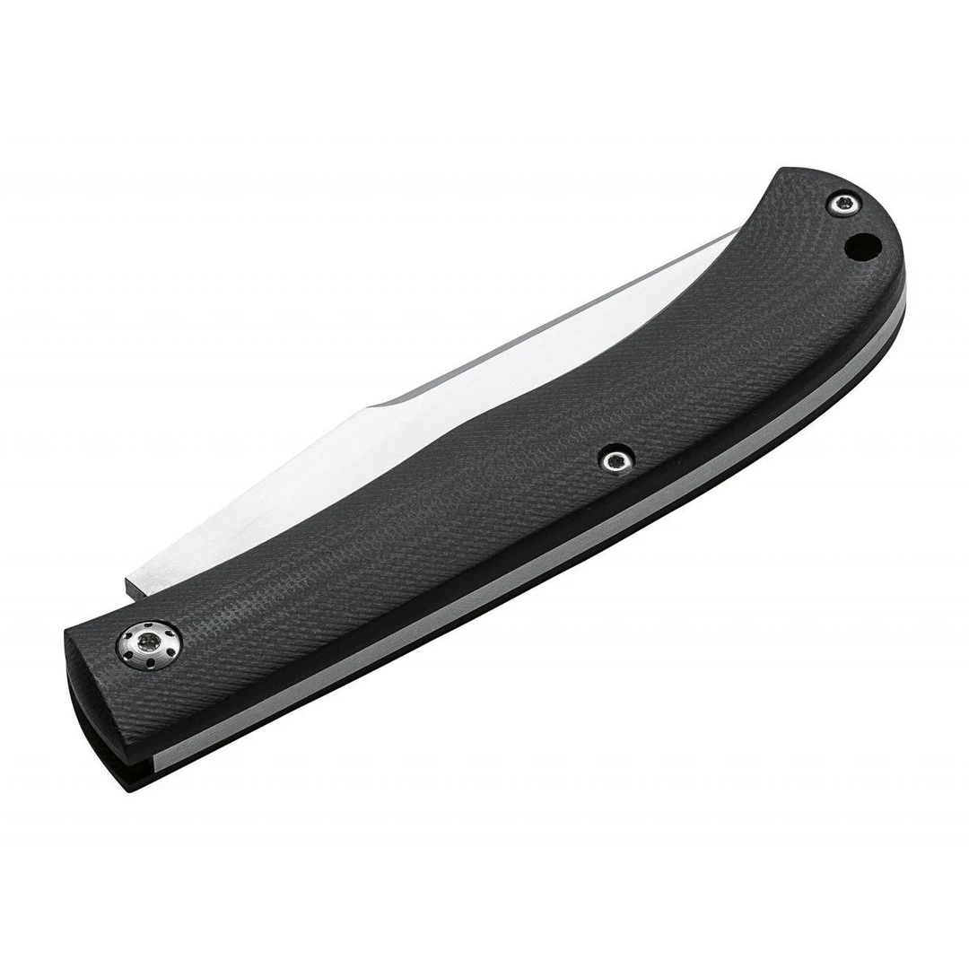 French knifemaker Raphael Durand graces the knife community with his new Boker Slack which is a classic gentleman’s folder that sports a non-locking slip joint locking mechanism and was built with 2 different handle scale options. The Slip Joint category of has seen a steady increase in popularity with their almost-global acceptance since the held in only held open by spring pressure against a notch in the blade tang. The Boker Plus line of knives are designed in cooperation with knife experts worldwide and provide innovative knife concepts for every task. This model features black G-10 handle scales, a clip point style blade in a satin finish and no pocket clip.