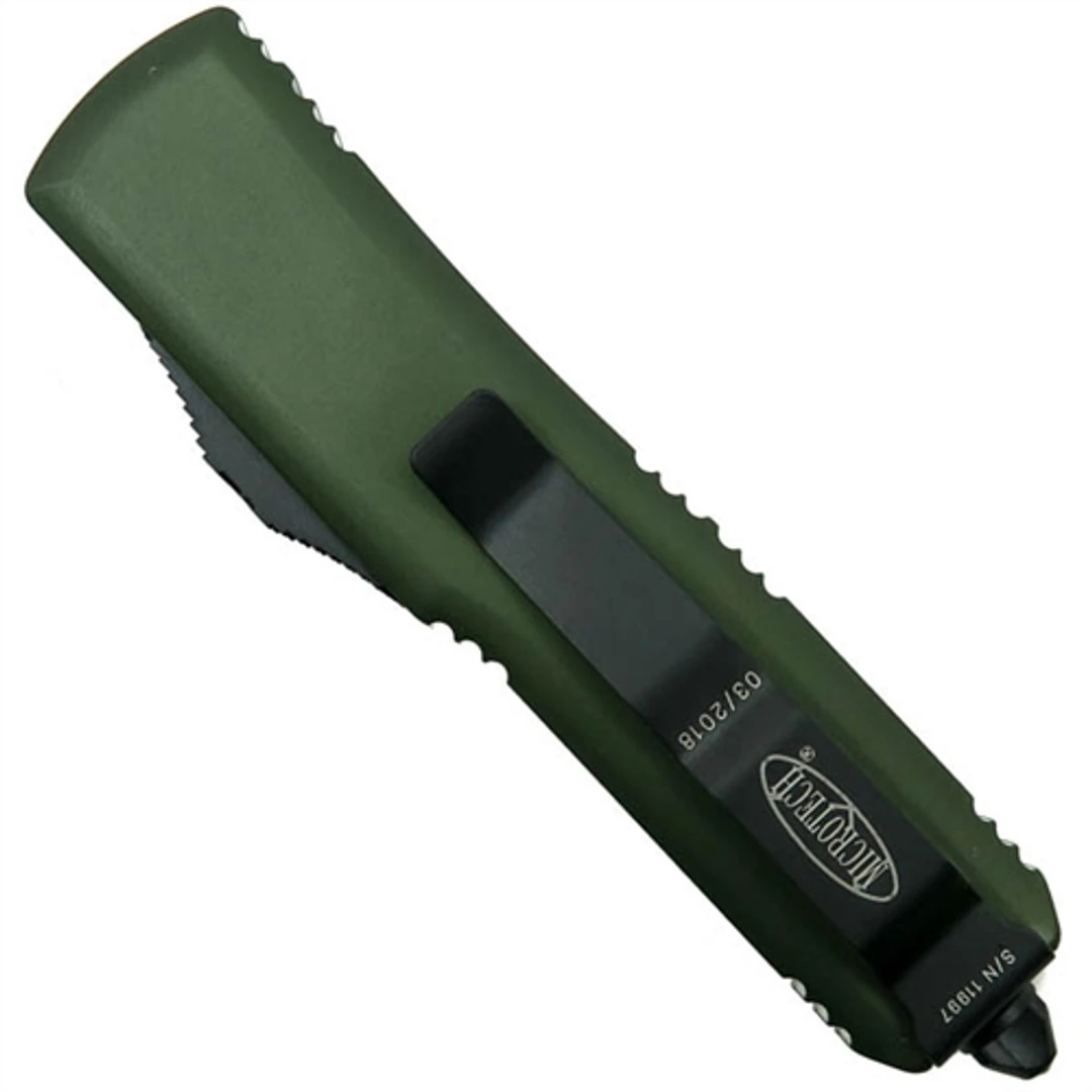 The radically redesigned Microtech UTX-85 out the front knife now features a new contoured handle, updated tri-angle hardware, a redesigned thumb slide and the glass breaker that now includes a press fitted ball bearing for a more comfortable, but still functional, user experience. This fantastic dual action knife is the ideal size and as the name exhibits, the UTX-85 is 85% the size of the flagship Ultratech knife but with 100% of the capability. This model boasts an olive drab green anodized handle complete with standard black hardware and an integrated glass breaker function along with a dagger style blade in a black finish. Made in the USA.